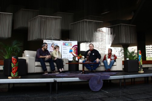 La rueda de prensa se realizó en los espacios abiertos del teatro Teresa Carreño, donde se efectuará la 11.a edición de la Filven, del 12 al 22 de marzo. La muestra también ocupará las sedes de la Universidad Nacional Experimental de las Artes (Unearte), la Plaza de los Museos, el Museo de Ciencias, la Cinemateca Nacional, el Museo de Bellas Artes y el Eje del Buen Vivir.