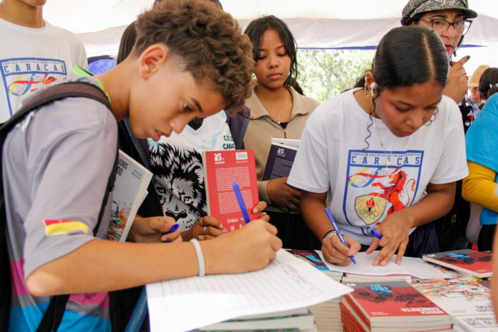 Libros de la colección “25 para el 25” siguen llegando gratuitamente a jóvenes estudiantes de todo el país, entre ellos alumnos de cuarto y quinto año de bachillerato del liceo Pedro Emilio Coll, ubicado en la parroquia Coche de Caracas, quienes manifestaron gran emoción por esta iniciativa que fomenta la lectura con autores del Boom Latinoamericano.
