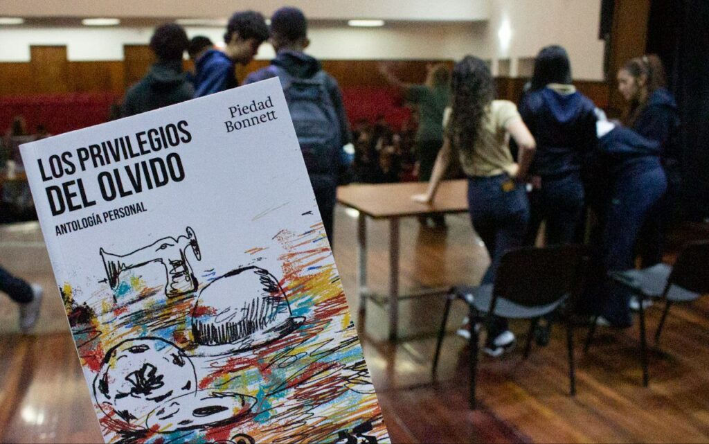 El poema “Sueños” del libro “Los privilegios del olvido” de la poeta, novelista, dramaturga y crítica literaria colombiana Piedad Bonnett, que forma parte de la colección “25 para el 25”, fue recitado por la gerente de Estrategias del Cenal, Yris Villamizar, y la promotora de lectura Martha González, a cargo de una dinámica para cultivar el hábito de leer. Los jóvenes crearon y compartieron textos propios a partir del poema de Bonnett.