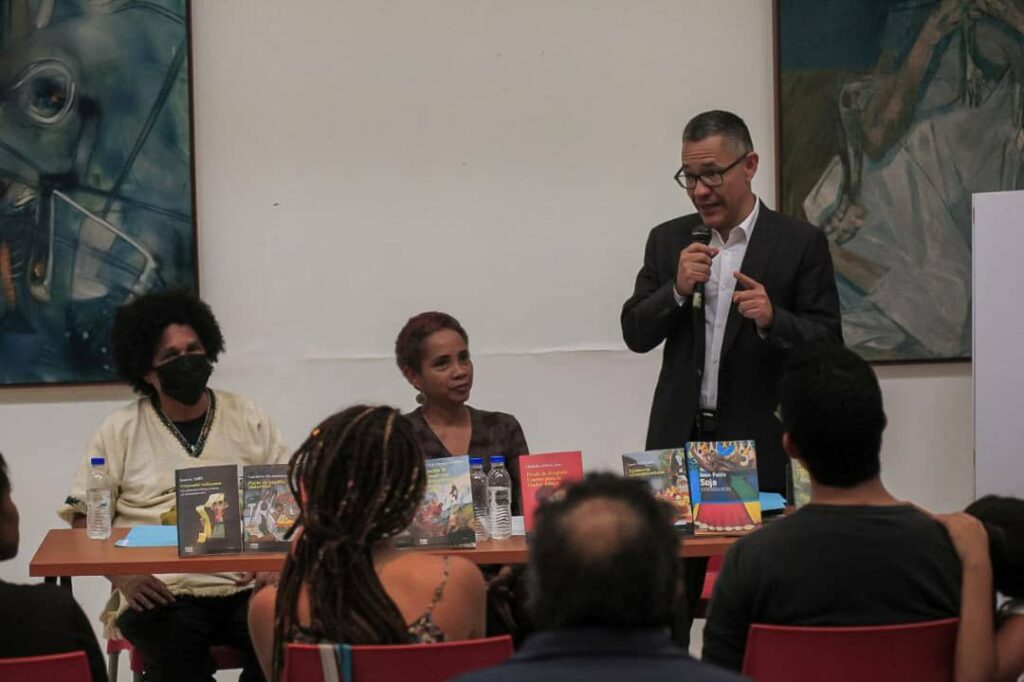 Como muestra de la literatura africana también se presentaron Legs/Piernas – Suite autobiographique de Leg de Gnoula Lionelle Edoxi; De la sociología de la descolonización al nuevo antiimperialismo decolonial, de Ramón Grosfoguel; y Afroepistemología, de Jesús “Chucho” García.