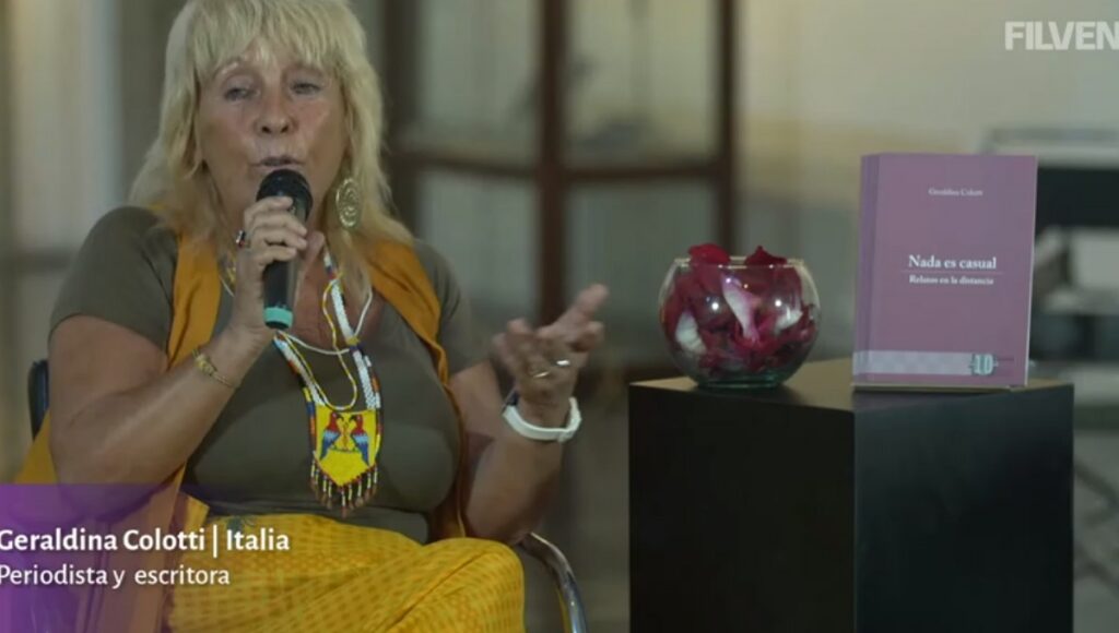 Otro de los libros presentados fue Nada es casual. Relatos en la distancia, de la periodista y escritora italiana Geraldina Colotti, editado por Vadell Hermanos, que recoge 69 cuentos escritos a lo largo de varios años.
