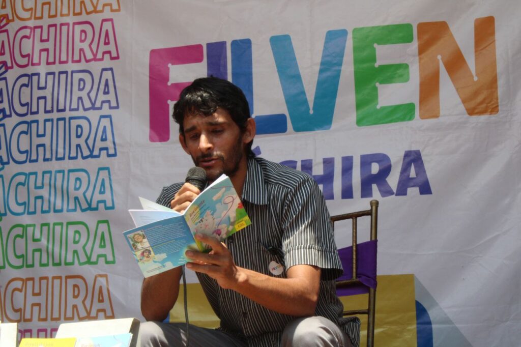 Ennio Tucci, autor de la novela En primera (Monte Ávila, 2023) y director de Ediciones Madriguera, quien participa como escritor nacional invitado, presentó libros infantiles publicados por el sello editorial a su cago, entre ellos Rocinante, de Luz Marina Almarza, y Ronda del pan y del trigo, de José Gregorio González Márquez.